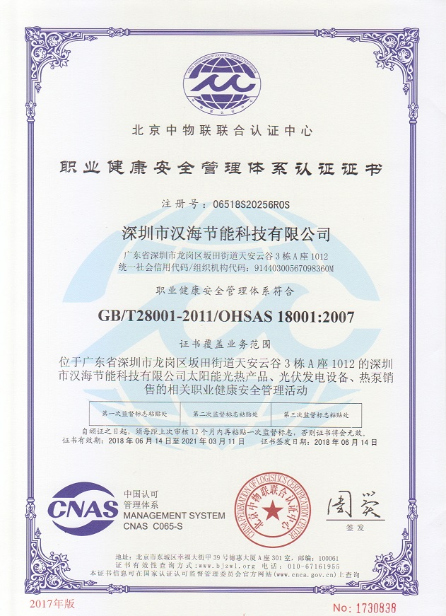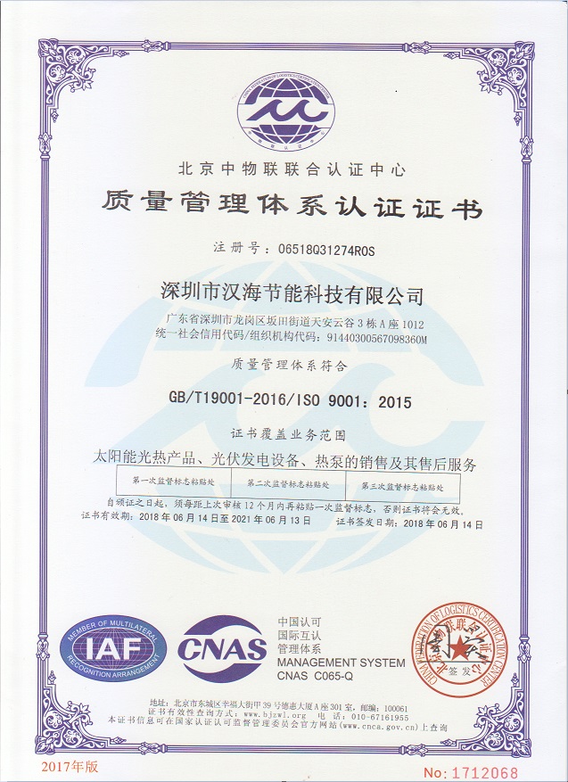深圳市漢海節(jié)能科技有限公司成立于2011年,注冊資金6000萬元,總部設(shè)在深圳,是一家集設(shè)計、研發(fā)、施工于一體的專業(yè)化從事太陽能中央熱水工程、熱泵中央熱水工程、中央空調(diào)、光伏發(fā)電、水處理等新能源及節(jié)能環(huán)保行業(yè)的綜合服務(wù)商和工程商。在將近10年的發(fā)展歷程中,始終走在行業(yè)發(fā)展的前沿,是專業(yè)從事太陽能光熱、光伏,空氣源、太陽能熱水工程、水源熱泵,中央空調(diào),水處理產(chǎn)品的設(shè)計、安裝、售后服務(wù)為一體的高新技術(shù)企業(yè);是專業(yè)提供太陽能中央熱水工程、熱泵中央熱水工程、中央空調(diào)工程、光伏發(fā)電工程、水處理工程、太陽能熱水工程等全面解決方案的供應(yīng)商和工程商,產(chǎn)品涵蓋太陽能集熱器、空氣源熱泵、水源熱泵、中央空調(diào)、光伏組件、太陽能熱水工程等,是新能源的倡導(dǎo)者和推動者。公司成立以來,始終秉承“誠信、責(zé)任、專業(yè)、高效”的服務(wù)宗旨,以市場需求為導(dǎo)向,以為客戶創(chuàng)造價值為己任的精神,不斷開拓創(chuàng)新,通過多年的快速發(fā)展,公司綜合實力躍居行業(yè)前列。漢海擁有一支經(jīng)驗豐富、善打硬仗的專業(yè)高效團(tuán)隊;擁有一批專業(yè)的高級工程師、中級工程師、二級建造師、造價工程師、電氣設(shè)計師、給排水設(shè)計師;擁有一批機(jī)電、安防、水、電等專業(yè)技術(shù)施工和售后人員,配備先進(jìn)齊全,實力雄厚,技術(shù)領(lǐng)先。漢海以質(zhì)量樹信譽(yù)、以工藝立標(biāo)桿、以管理創(chuàng)效益、以服務(wù)得人心,工藝水平在業(yè)界獨(dú)樹一幟,成為行業(yè)模仿的典范。漢海承建的機(jī)電工程(設(shè)計、施工)涉及星級酒店、賓館、高檔辦公樓、花園別墅、住宅小區(qū)、學(xué)校、水療中心、工廠等各種類型的工程,工程項目遍布全國各地。漢海將致力于成為全球信賴的新能源綜合服務(wù)商,為客戶提供新能源的全方位解決方案。未來,漢海將依托國家政策,積極開拓粵港澳大灣區(qū)、中國特色社會主義先行示范區(qū)市場及“一帶一路”沿線國際市場,推動新能源的新輝煌。